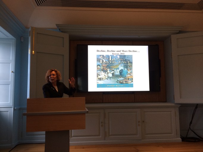 Maya Shatzmiller giving her keynote lecture, ‘Structural change and economic development in the Islamic Middle East, 700-1500’, in Panmure House